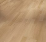 Parador engineered wood flooring Beech 3-strip from the Classic 3060 product line meets the highest demands in terms of design and quality and can satisfy a wide range of design requirements. The high-quality engineered wood flooring has a matt lacquer finish and creates a very special and natural atmosphere for any living room ambience. The planks of uncompromising quality are available as a 3-strip in the format 2200 x 185 x 13 mm. The Natur assortment is the best basis for a flooring design with a natural but balanced overall effect. The design of the planks has no bevels, so that the planks join together without any noticeable gaps, creating a uniform and harmonious installation pattern. Durable and stylish in installation, Parador Classic 3060 engineered wood flooring is easy to install thanks to an Automatic-Click system with long and end edge locking. The all-round impregnation of the lamellas and top layers ensures reliable swelling protection. The top layer is about 3.6 mm high. This engineered wood flooring is suitable for installation on underfloor heating systems. The manufacturer’s guarantee is 25 years. For the production of Parador engineered wood flooring from the Classic 3060 product line, wood from sustainably managed sources is predominantly used. Parador engineered wood flooring has received several certifications.