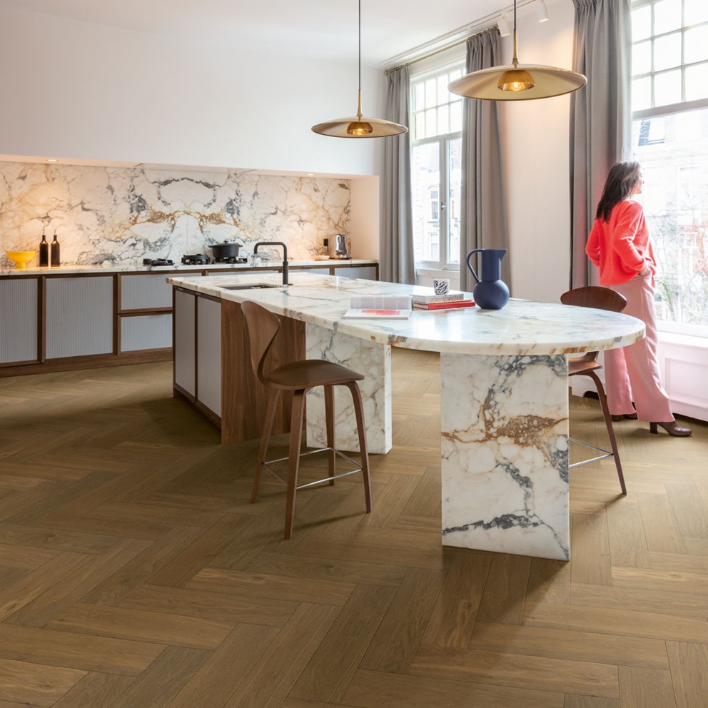 The moisture-repellent ‘Wood for Life’ technology can help to prevent mud, spilled foods and other dirt from getting stuck in the joints and texture of the wood. This helps to keep your floor looking as good as new. -