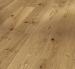Parador engineered wood flooring Oak wide plank from the Classic 3060 product line meets the highest demands in terms of design and quality and can satisfy a wide range of design requirements. The high-quality engineered wood flooring has a natural oil plus finish and creates a very special and natural atmosphere for any living room ambience. The planks of uncompromising quality are available as a wide plank in the format 2200 x 185 x 13 mm. The knotty look, the pronounced play of colours and the distinct grain make the Rustikal assortment look particularly original. The planks have an all-round mini bevel, which discreetly interrupts the appearance of the installed planks and underlines the typical engineered wood flooring look. Durable and stylish in installation, Parador Classic 3060 engineered wood flooring is easy to install thanks to an Automatic-Click system with long and end edge locking. The all-round impregnation of the lamellas and top layers ensures reliable swelling protection. The top layer is about 3.6 mm high. This engineered wood flooring is suitable for installation on underfloor heating systems. The manufacturer’s guarantee is 25 years. For the production of Parador engineered wood flooring from the Classic 3060 product line, wood from sustainably managed sources is predominantly used. Parador engineered wood flooring has received several certifications.