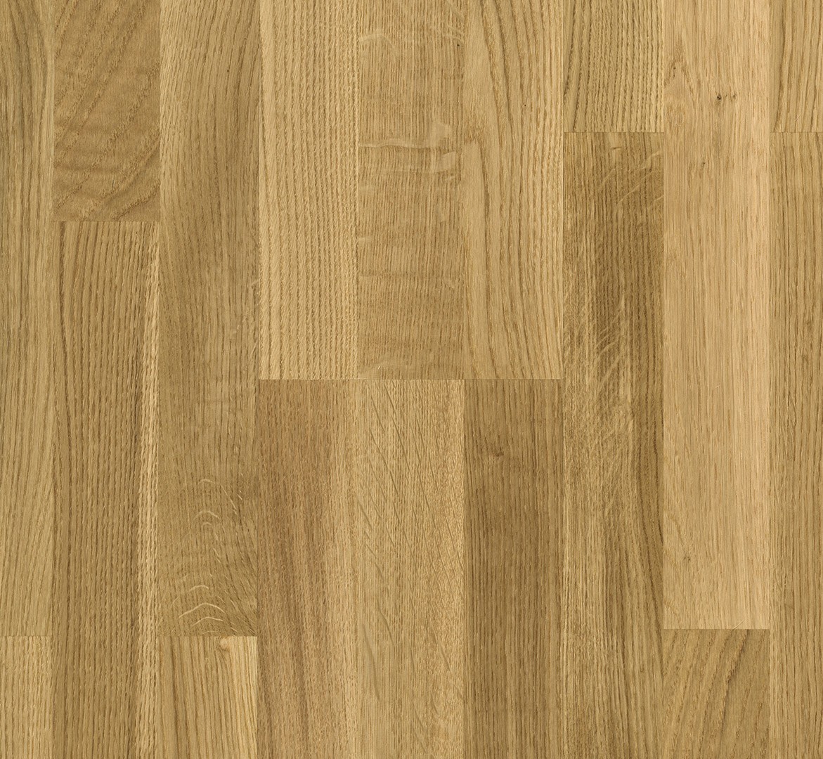 Parador engineered wood flooring Oak 3-strip from the Basic 11-5 product line is an attractive engineered wood flooring with a top layer of solid wood in matt lacquer, which enables price-conscious interior design with individual and high-quality engineered wood flooring. Suitable for everyday use and easy to maintain, this convincing natural product offers a wide range of design options. This Parador engineered wood flooring from the Basic 11-5 product line is available as a 3-strip in the format 2200 x 185 x 11.5 mm. Its design with no bevel ensures a closed and uniform installation pattern. The Natur assortment is the best basis for achieving a natural and original overall effect. Parador engineered wood flooring Basic 11-5 has an Automatic-Click system and is easy to install – also thanks to the low installation height of 11.5 mm. The top layer is about 2.5 mm high. The engineered wood flooring is even suitable for installation on underfloor heating systems. This flooring has reliable swelling protection due to an all-round lamella and top layer impregnation. A manufacturer’s guarantee period of ten years is granted.