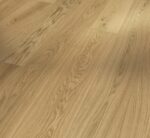 Parador engineered wood flooring Oak brushed wide plank Natur from the Classic 3025 product line offers a wide range of design options for people with high standards of design and quality. The flooring in the classic design with the natural oil plus surface finish is a stylish basis in the design of living spaces. The Classic assortment boasts a vibrant range between a harmonious, natural and earthy look. The four-sided mini bevel discreetly accentuates each individual plank and thus underlines the natural quality of the wooden flooring. Parador engineered wood flooring Oak brushed wide plank Natur from the Classic 3025 product line is available as a wide plank in the format 2200 x 185 x 13 mm. Parador engineered wood flooring Classic 3025 is uncompromising in quality and features all-round lamellas and top layer impregnation. The top layer is 2.5 mm high. This engineered wood flooring is suitable for installation on underfloor heating and underfloor cooling. It is easy and safe to install thanks to an automatic click system with long and end edge locking. This flooring comes with a manufacturer’s guarantee (according to Parador guarantee terms) of 25 years. For the production of Parador engineered wood flooring from the Classic 3025 product line, wood from sustainably managed sources is predominantly used. Parador engineered wood flooring has received several certifications.