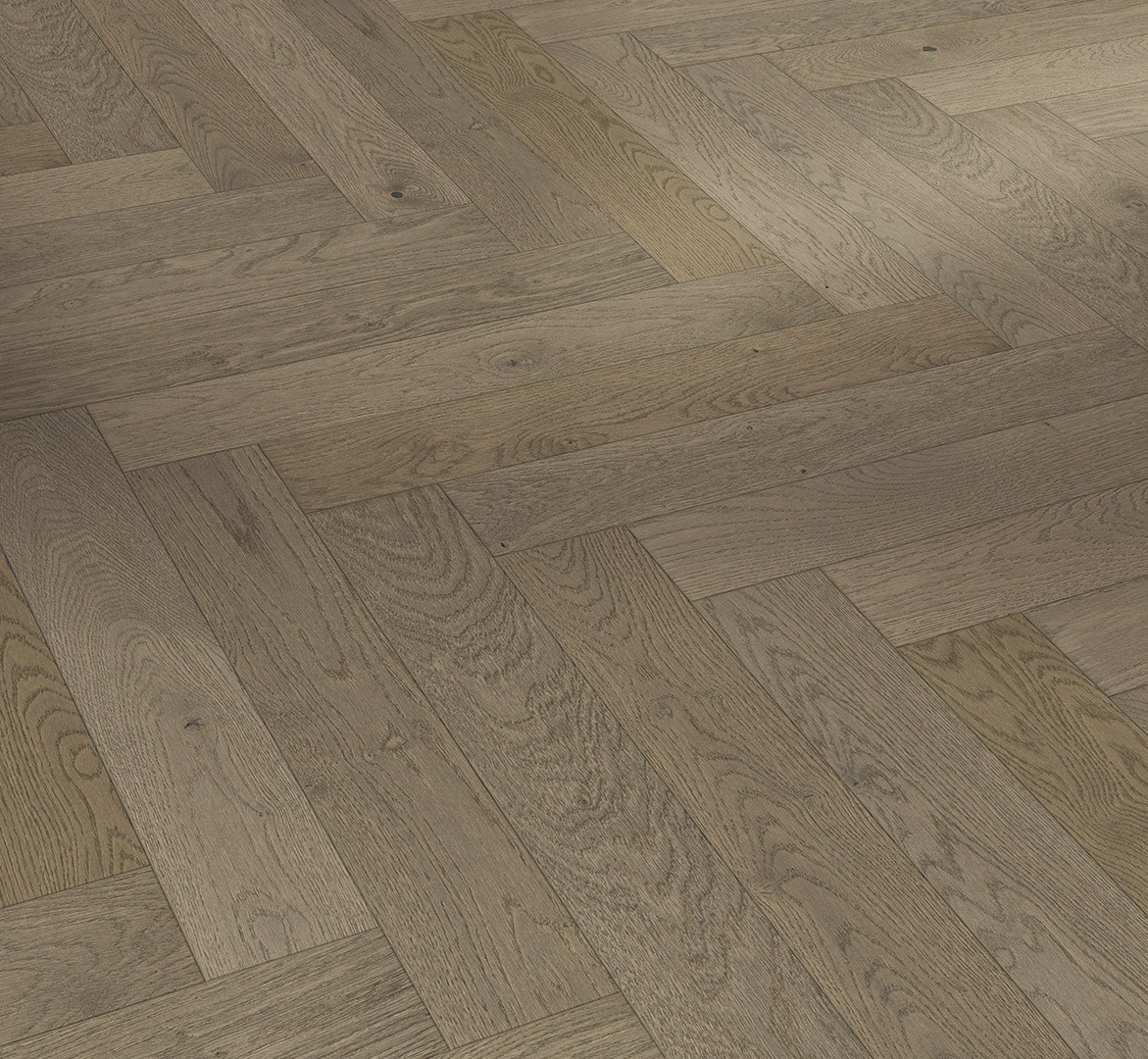 Parador engineered wood flooring Oak Chalet grey strip (herringbone installation) from the Trendtime 3 product line stands for particularly high-quality and pleasant living. Available as a strip in the format 570 x 95 x 13 mm, this refined engineered wood flooring impresses by using high-quality oak wood. The 4-sided bevel emphasises each plank individually and visually enhances its length effect. The top layer made of solid wood in the Living Plus assortment has a extra matt lacquer finish and is characterised by a vibrant look and attributes of earthy wood without sapwood. A 4-sided mini bevel discreetly interrupts the appearance of the installed planks and thus underlines the original character of engineered wood flooring. Thanks to the innovative Allround-Click system, Parador engineered wood flooring from the Trendtime 3 product line is easy to install – even on underfloor heating systems. Right and left strips are not required. The engineered wood flooring remains dimensionally stable and gives a pleasant walking sensation that is warm underfoot. The height of the top layer is approx. 2.5 mm. An all-round lamella and top layer impregnation ensures reliable swelling protection and a lot of pleasure from this engineered wood flooring, for which wood from sustainably managed sources is predominantly used. The manufacturer’s guarantee on this floor is 25 years.