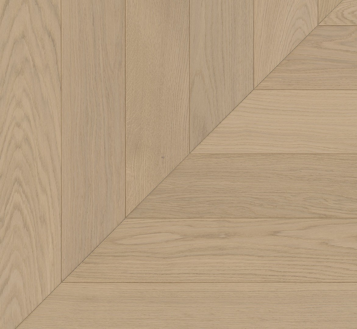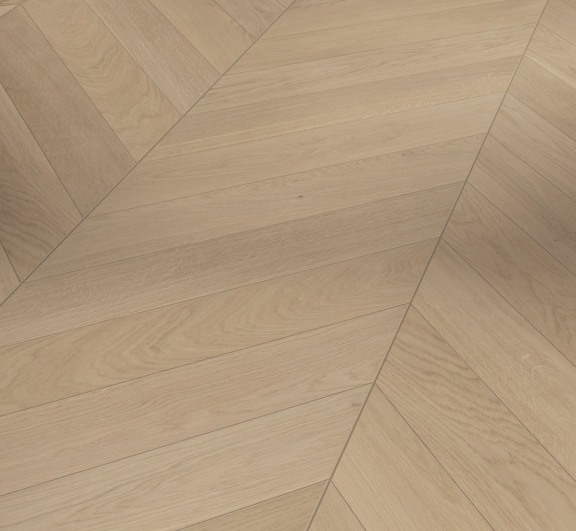 Parador parquet oak Chevron opens up a particularly creative design option for individual living spaces with high-quality living room flair. The engineered wood flooring picks up on the traditional French herringbone pattern, which is one of the absolute trends in floor design. Durable and stylish, the parquet flooring with solid wood top layer made of high-quality oak proves to be visually particularly noble. The planks in the format 610 x 90 x 15 mm are available as left and right planks and thus allow an authentic implementation of this unusual installation pattern. The natural assortment contributes to a harmonious, natural look. The surface finish lacquer-sealed matt additionally protects the floor. The 4-sided mini bevel underlines the naturalness of the floor and emphasizes the individual planks. The result is a harmonious laying pattern. For a durable connection stability, a full-surface gluing as well as installation by a professional is required. The circumferential tongue and groove joint facilitates installation in the adhesive bed and enables uncomplicated continuous installation. A circumferential lamella and cover layer impregnation ensures reliable swell protection. The height of the top layer is approx. 3.5 mm. This engineered wood flooring is suitable for installation on underfloor heating systems. The warranty period provided by Parador is 25 years. For the production of Parador chevron engineered wood flooring is mainly used wood from sustainably managed sources. Parador engineered wood is certified several times.