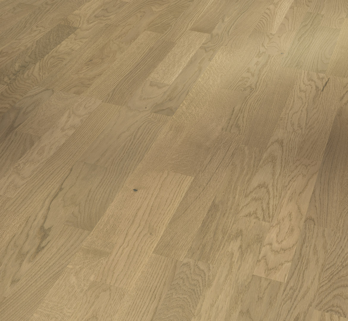 Parador engineered wood flooring Oak Malbec light-whitewashed 3-strip from the Classic 3025 product line offers a wide range of design options for people with high standards of design and quality. The flooring in the classic design with the white matt lacquer surface finish is a stylish basis in the design of living spaces. The Rustikal assortment, due to its knotty appearance, the pronounced play of colours and its distinct grain, appears particularly original. The design of the planks has no bevels, so that the planks join together without any noticeable gaps, creating a uniform and harmonious installation pattern. Parador engineered wood flooring Oak Malbec light-whitewashed from the Classic 3025 product line is available as a 3-strip in the format 2200 x 185 x 13 mm. Parador engineered wood flooring Classic 3025 is uncompromising in quality and features all-round lamellas and top layer impregnation. The top layer is 2.5 mm high. This engineered wood flooring is suitable for installation on underfloor heating and underfloor cooling. It is easy and safe to install thanks to an automatic click system with long and end edge locking. This flooring comes with a manufacturer’s guarantee (according to Parador’s guarantee terms) of 25 years. For the production of Parador engineered wood flooring from the Classic 3025 product line, wood from sustainably managed sources is predominantly used. Parador engineered wood flooring has received several certifications.