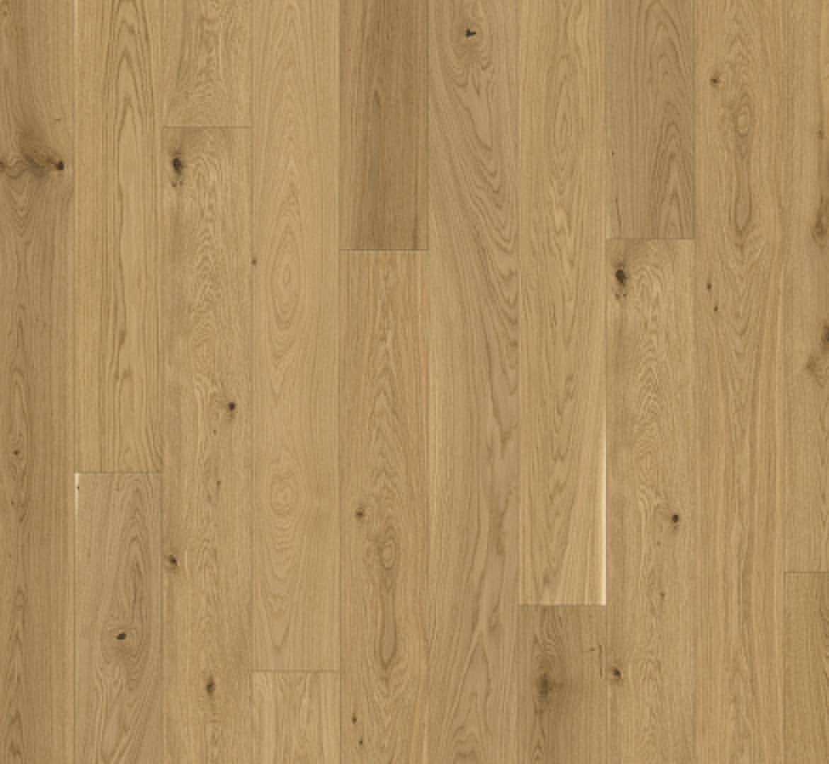 Parador engineered wood flooring Oak Molvina natural wide plank from the Trendtime 4 product line enables trendy interior design at the highest level. The sophisticated design as well as the matt lacquer surface of the wide planks in the format 2010 x 160 x 13 mm make this engineered wood flooring a real all-rounder in the field of unique living space design. The Living assortment is characterised by vibrant looks and stresses the earthy character of the wood. A 4-sided mini bevel discreetly interrupts the appearance of the installed planks and thus underlines the original character of engineered wood flooring. The planks can be installed very easily thanks to an Automatic-Click system with long and end edge locking. An all-round lamella and top layer impregnation provides reliable swelling protection. The height of the solid wood top layer is approx. 3.6 mm. The flooring remains dimensionally stable and gives a pleasant walking sensation that is warm underfoot. Parador engineered wood flooring Trendtime 4 is suitable for installation on underfloor heating systems. The manufacturer’s guarantee on this engineered wood flooring is 25 years. For the production of Parador engineered wood flooring from the Trendtime product line, wood from sustainably managed sources is predominantly used. Parador engineered wood flooring has received several certifications.