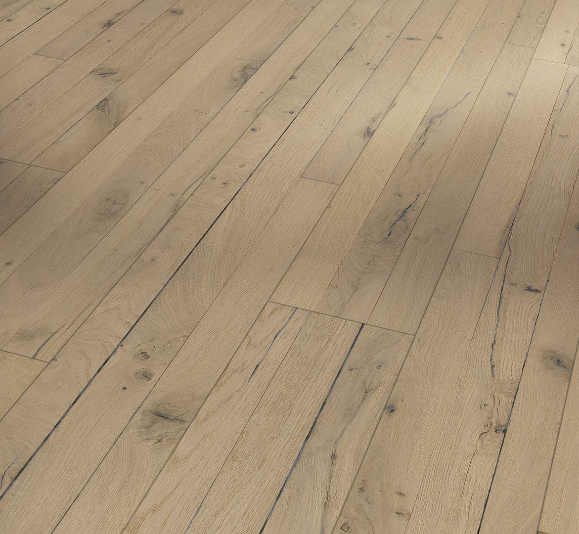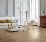 Parador engineered wood flooring Oak Pinot Loftplank wide plank Natur from the Trendtime 8 product line is a refined engineered wood flooring with a solid oak top layer and the natural oil plus surface finish, which makes many design dreams come true. As a wide plank in the format 1882 x 190 x 15 mm, the engineered wood flooring blends harmoniously into living spaces and gives the rooms a particularly natural atmosphere. The Classic assortment boasts a vibrant range between a harmonious, natural and earthy look. The four-sided mini bevel discreetly accentuates each individual plank and thus underlines the natural quality of the wooden flooring. An Automatic-Click system with long and end edge locking ensures that Parador engineered wood from the Trendtime 8 product line is particularly easy to install. The all-round lamella and top layer impregnation ensures reliable swelling protection. The top layer is about 4 mm high. Engineered wood flooring in this product line is suitable for installation on underfloor heating systems. The guarantee period granted by Parador (according to Parador guarantee terms) is 25 years. For the production of Parador engineered wood flooring from the Trendtime product line, wood from sustainably managed sources is predominantly used. Parador engineered wood flooring has received several certifications.