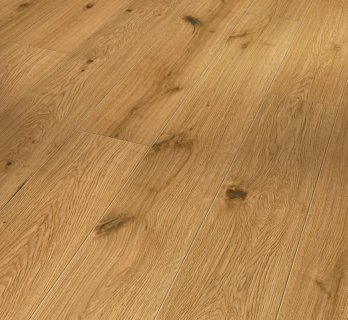 Parador Engineered Wood Flooring Oak Savanna wideplank from the Trendtime 8 product line is an elegant engineered wood flooring with a solid oak top layer that makes design dreams come true. The surface has a natural oiled plus finish. As a plank in the 2200 x 185 x 13 mm format, the parquet blends harmoniously into living spaces and creates a natural atmosphere. The Rusitkal grade has a lively spectrum between a harmonious, natural, and rustic look. The subtle features of a partial sawn structure in combination with interlocking planed waves characterise this extraordinary floor and suggest that the individual planks have been handcrafted. A full-surface deep brushing additionally emphasises wood features and the grown oak structure. Depending on the angle and intensity of the incident light, the surface is emphasised to varying degrees and is sometimes more, sometimes less prominent. The 4-sided bevel emphasises each plank individually and visually enhances its spatial effect. The result is a harmonious surface appearance. An automatic click system with longitudinal and end edge locking ensures that Parador engineered wood flooring from the Trendtime 8 product line is particularly easy to install. The top layer is approx. 3.6 mm thick. Engineered wood flooring from Parador is suitable for installation over underfloor heating. The guarantee period granted by Parador is 25 years. Wood from sustainably managed sources is predominantly used in the production of Parador engineered wood flooring. Parador engineered wood flooring is made in Austria and has multiple certifications.