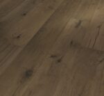 Parador engineered wood flooring Oak smoked grey handcrafted wide plank from the Trendtime 8 product line is a refined engineered wood flooring with a solid oak top layer in natural oil plus, which makes many design dreams come true. As a wide plank in the format 1882 x 190 x 14 mm, the engineered wood flooring blends harmoniously into living spaces and gives the rooms a particularly natural atmosphere. The Classic assortment boasts a vibrant range between a harmonious, natural and earthy look. Another special feature of this engineered wood flooring is the handcrafted texture. This is a hand-finished surface with discreet features that emphasise the original look of the wooden floorboards. The 4-sided bevel emphasises each plank individually and visually enhances its length effect. An Automatic-Click system with long and end edge locking ensures that Parador engineered wood from the Trendtime 8 product line is particularly easy to install. The all-round lamella and top layer impregnation ensures reliable swelling protection. The top layer is about 3 mm high. Engineered wood flooring in this product line is suitable for installation on underfloor heating systems. The guarantee period granted by Parador is 25 years.For the production of Parador engineered wood flooring from the Trendtime product line, wood from sustainably managed sources is predominantly used. Parador engineered wood flooring has received several certifications.