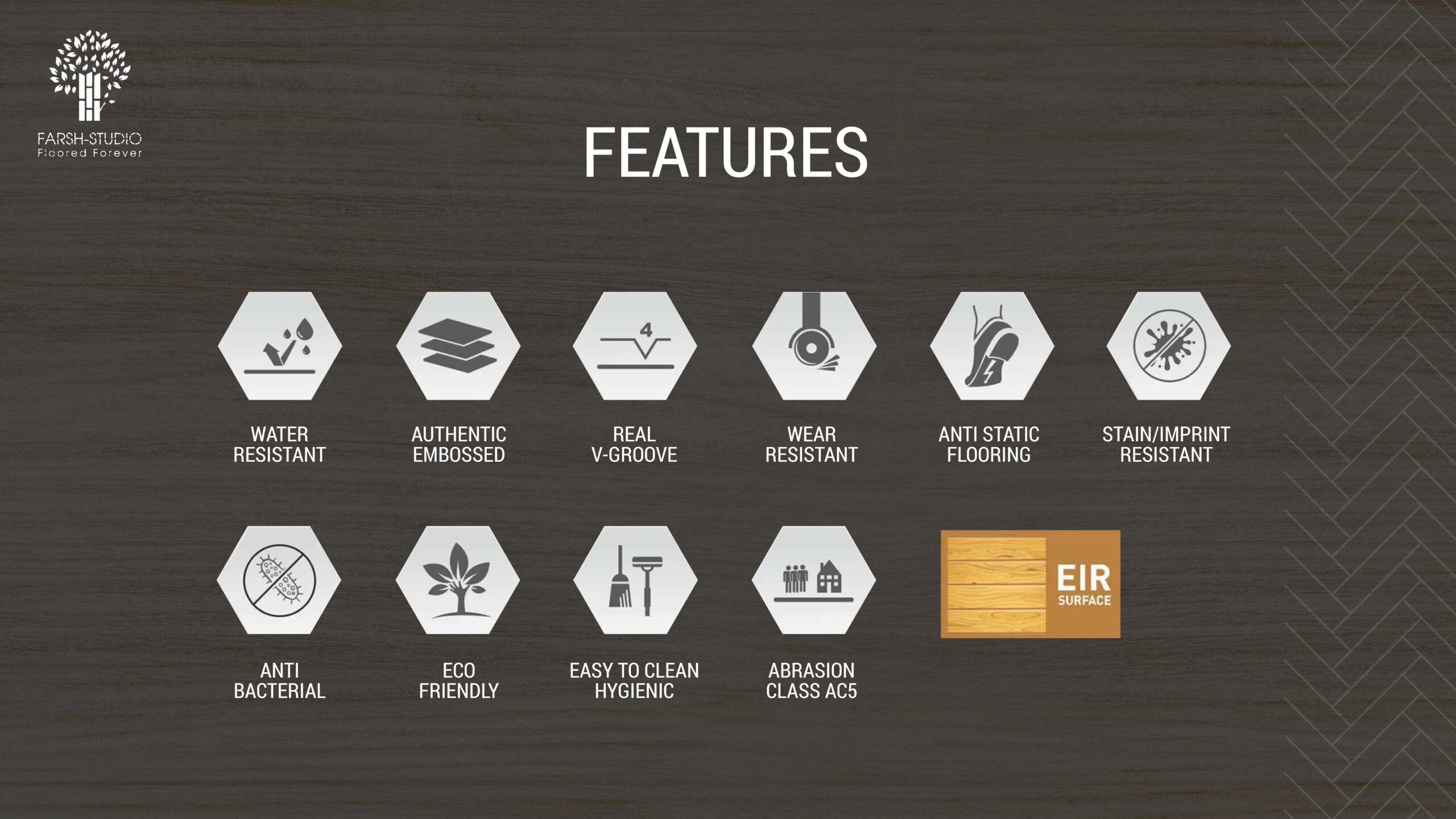 Elegant Herringbone Pattern • Realistic EIR Texture • High Durability (AC5) • Wax-Sealed Protection • Moisture & Scratch Resistant • Easy Installation |